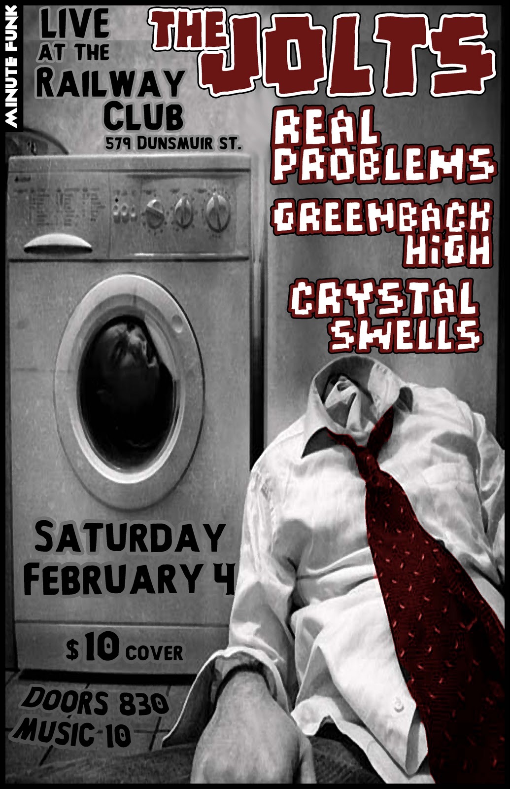 Real Problems hits the stage this Saturday Feb 4th @ The Railway Club where they will be joined by some rock n roll heavyweights The Jolts, Green Back High and Crystal Swells.